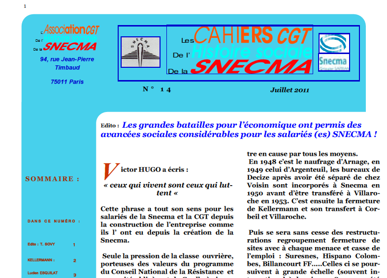 Association d'Histoire Sociale CGT de SNECMA - Groupe SAFRAN